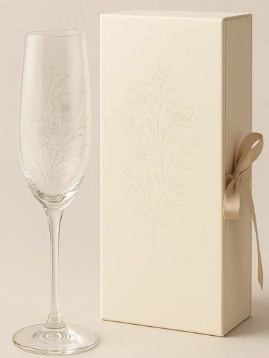 The Chanmire Signature Champagne Flute is an elegant, crystal-clear glass with floral etchings, metallic accents, and luxurious packaging.